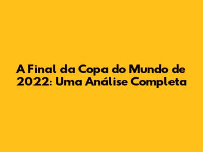 A Final Da Copa Do Mundo De 2022: Uma Análise Completa