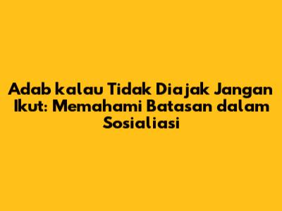 Adab atau etika dalam pergaulan sosial seringkali menjadi landasan utama dalam menjaga hubungan yang harmonis. Salah satu aspek penting yang perlu dipahami adalah mengenai partisipasi dalam suatu acara atau kegiatan. Ungkapan "adab kalau tidak diajak jangan ikut" bukanlah sekadar pepatah, melainkan cerminan dari kesopanan dan norma sosial yang berlaku di masyarakat. Dalam artikel ini, kita akan membahas lebih dalam mengenai makna dari ungkapan tersebut, serta bagaimana menerapkannya dalam berbagai konteks sosial.