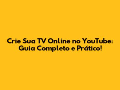 Crie Sua TV Online No YouTube: Guia Completo E Prático!