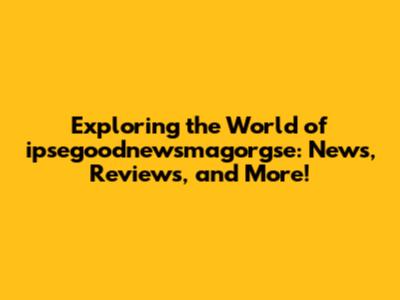 Exploring The World Of Ipsegoodnewsmagorgse: News, Reviews, And More!