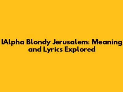 IAlpha Blondy Jerusalem: Meaning And Lyrics Explored
