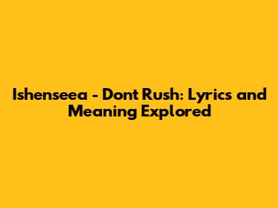 Ishenseea - Don't Rush: Lyrics And Meaning Explored