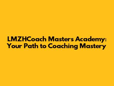 LMZHCoach Masters Academy: Your Path To Coaching Mastery