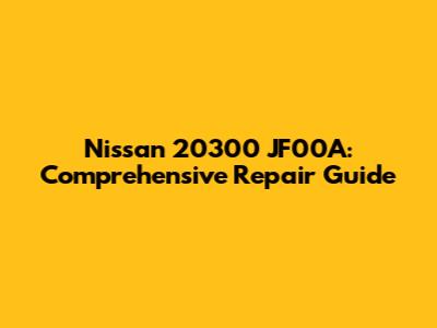 Nissan 20300 JF00A: Comprehensive Repair Guide