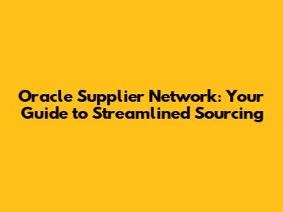 Oracle Supplier Network: Your Guide To Streamlined Sourcing