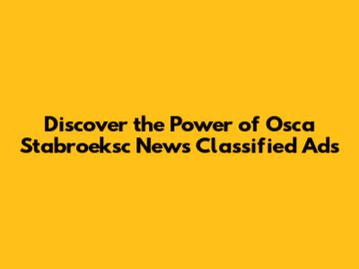 Discover the Power of Osca Stabroeksc News Classified Ads