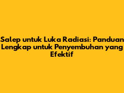 Guys, jika kamu atau orang terdekatmu sedang mengalami luka radiasi, jangan panik! Luka radiasi memang bisa bikin khawatir, tapi ada banyak cara untuk mengatasinya. Salah satunya adalah dengan menggunakan salep yang tepat. Artikel ini akan membahas secara lengkap tentang salep untuk luka radiasi, mulai dari jenis-jenisnya, cara kerjanya, hingga tips perawatan yang bisa kamu terapkan di rumah. Jadi, simak terus ya!