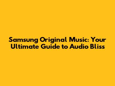 Samsung Original Music: Your Ultimate Guide To Audio Bliss