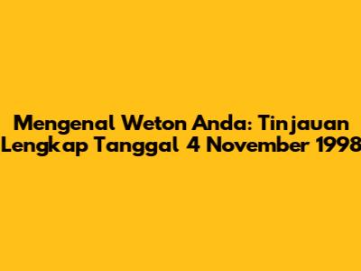 Hey, guys! Pernah nggak sih kalian penasaran sama arti di balik tanggal lahir kalian, terutama kalau ngomongin soal weton? Nah, buat kalian yang lahir di tanggal 4 November 1998, artikel ini bakal ngupas tuntas semuanya. Weton adalah semacam sistem penanggalan tradisional Jawa yang menggabungkan hari pasaran (Senin, Selasa, Rabu, Kamis, Jumat, Sabtu, Minggu) sama hari dalam kalender Masehi. Konon katanya, weton ini bisa ngasih gambaran soal watak, rejeki, sampai jodoh kita, lho! Jadi, kalau kamu penasaran sama weton tanggal 4 November 1998, yuk, kita selami bareng-bareng biar makin paham diri sendiri dan orang di sekitar. Dengan memahami weton, kita bisa lebih siap menghadapi berbagai tantangan hidup dan juga bisa lebih memaksimalkan potensi yang kita punya. Siap untuk menggali rahasia weton kelahiranmu?