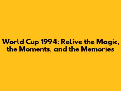 World Cup 1994: Relive The Magic, The Moments, And The Memories